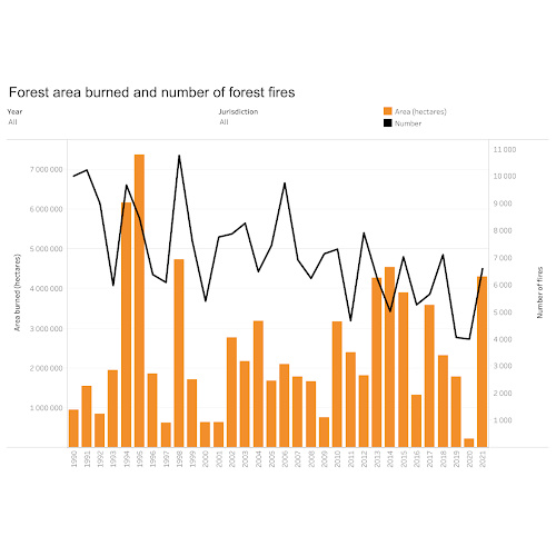 - Canada forest fires have decreased since 1991, NOT increased: http://nfdp.ccfm.org/en/data/fires.php