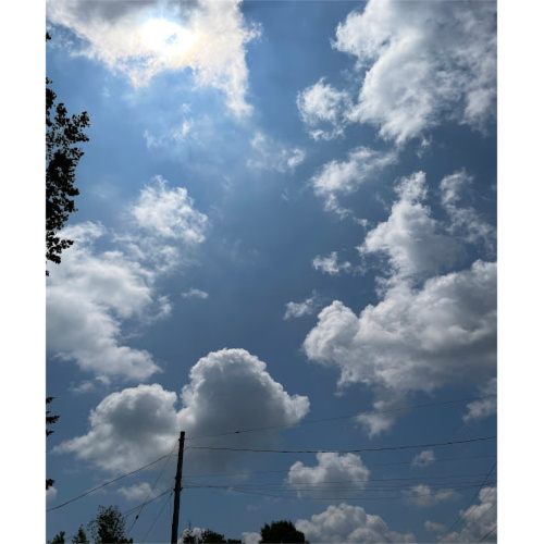 You can see in between the fluffy clouds that skies are still slightly hazy. This is not humidity. It’s not for any other reason than planes spraying chemicals. They still sprayed, just not as frequently. There were far fewer planes doing it, and they were noticeably higher up than normal. In fact, my camera couldn’t really focus and find them, but my eyes could planely see them (see what I did there? Sorry. Sometimes you just have to laugh)